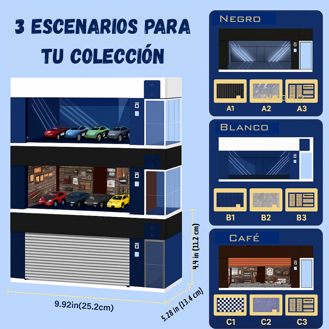 Michael S.Comprador verificadoQué bonito"He tenido muchos dioramas para exhibir mis autos, pero ninguno se compara: es interactivo, elegante y parece una sala de exposición de alta gama".Mini garaje ¿Estás de acuerdo? 9 0